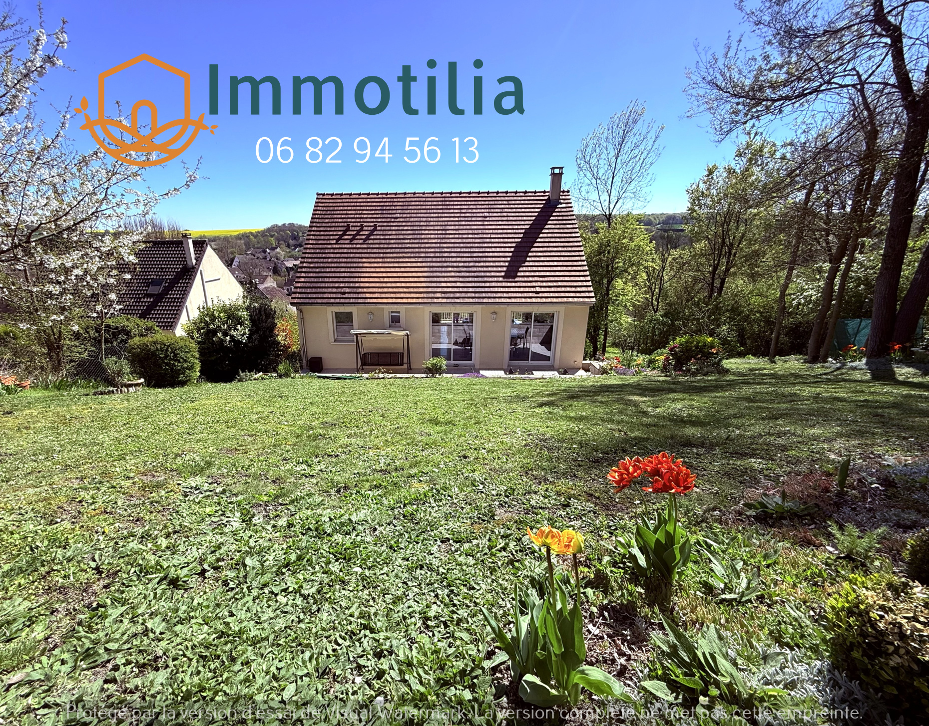 Région DONNEMARIE-DONTILLY, dans bourg tous commerces avec écoles et collège, à 15 mn d'une gare (Paris-Est) ou 20 mn (Paris-Lyon), campagne environnante agréable, vallonnée et boisée, PAVILLON TRADITIONNEL sur sous-sol, habitable sans travaux, sur un grand terrain de 2 194 m², comprenant au rez-de-chaussée : entrée, cuisine d’été équipée (le four ne reste pas), bureau (sans fenêtre), 1 chambre, salle d’eau, WC, garage ; à l’étage : séjour avec cuisine ouverte toute équipée, couloir, 1 chambre, salle d’eau, WC, cellier. Grande terrasse carrelée, cabanon de jardin de style chalet. Chauffage électrique par radiateurs au R-d-C, au sol à l’étage, tout à l’égout relié.