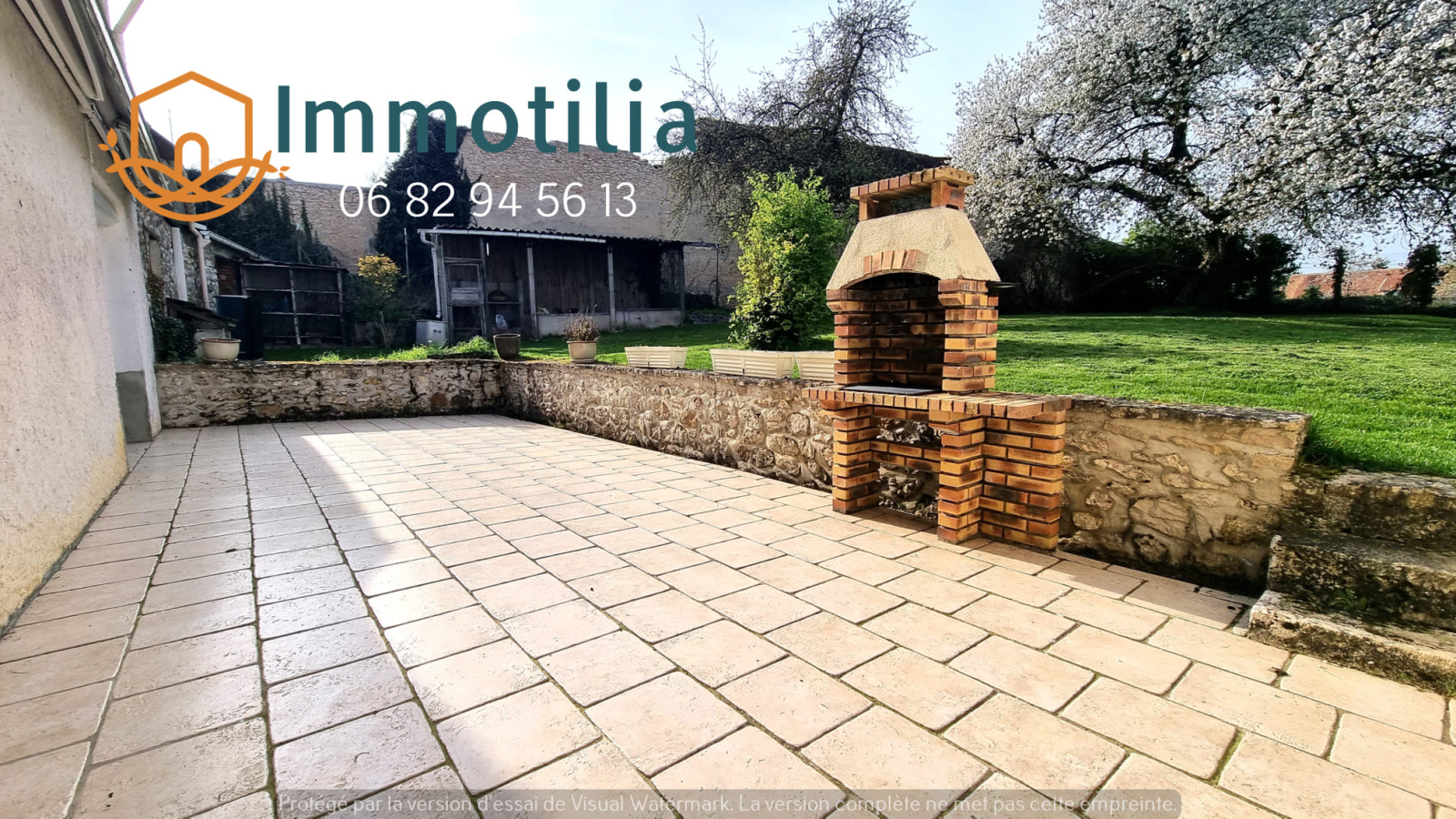100 Km de Paris, à 10 mn de la gare pour Paris-Est, dans village avec écoles aux alentours champêtres, vallonnés et boisés, sur 2 346 m² de jardin d'agrément, PROPRIÉTÉ BRIARDE offrant un bel espace de vie, intérieur aux pièces lumineuses, comprenant au rez-de-chaussée : cuisine (éléments hauts et bas en chêne rustique, plaque de cuisson 5 feux gaz par bouteille, four, hotte, lave-vaisselle), salon-séjour (cheminée avec insert), entrée (placard avec branchements lave-linge et sèche-linge), 1 chambre, salle d'eau avec WC; à l'étage: couloir, 4 chambres dont 1 avec placard, salle de bains, WC. Chaufferie en retour, remise avec cave en-dessous, 2 garages indépendants. Chauffage par pompe à chaleur DAIKIN de février 2026 (air / eau), tout à l'égout relié.